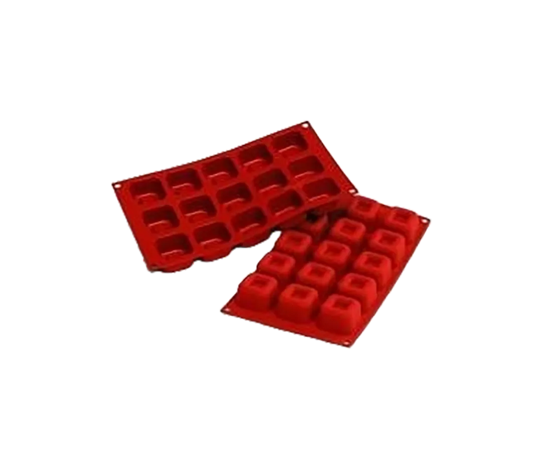 Moules silicone 15 savarins carrés.