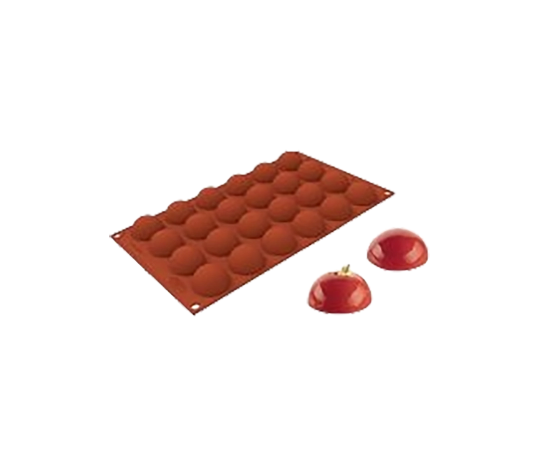 Moule silicone professionnel Silicon Flex par Silikomart, permettant la réalisation de 24 mini demi sphères. Indispensable pour réaliser inserts et décorations en pâtisseries.