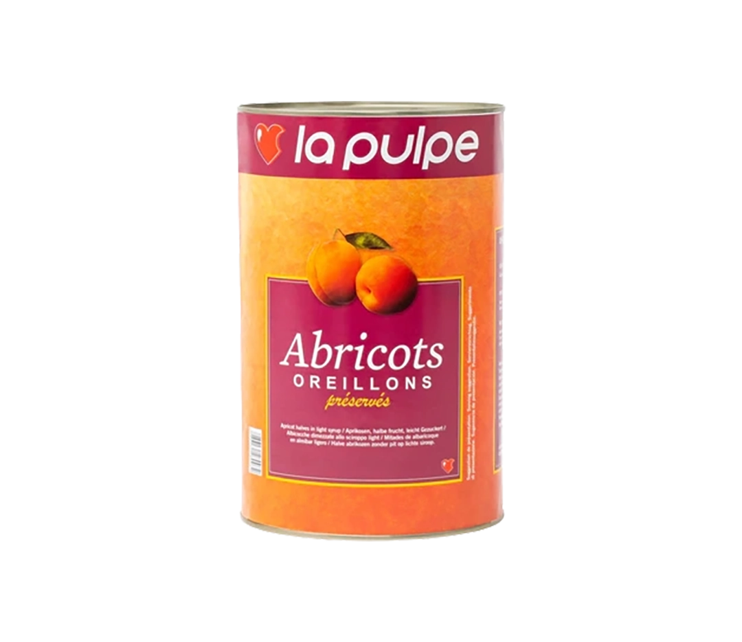 Les boîtes 5/1 d’Oreillons d’Abricots Pelés Préservés contiennent des abricots sélectionnés avec soin.