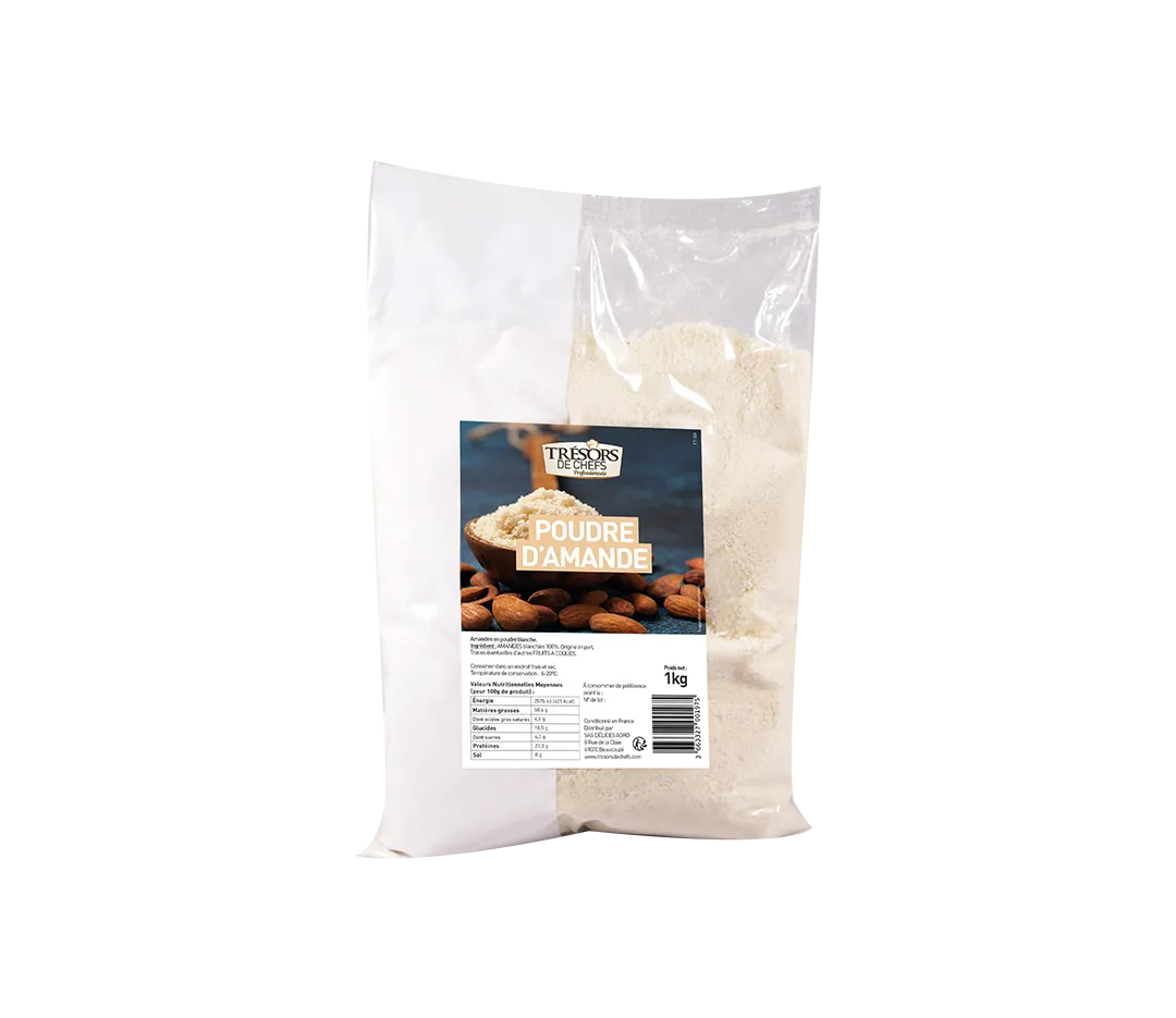 Découvrez notre poudre d'amande blanche, issue des meilleures amandes soigneusement sélectionnées pour garantir une qualité exceptionnelle. Idéale pour les professionnels et les passionnés de pâtisserie, elle offre une texture fine et un goût subtil. Parfaite pour vos créations gourmandes, des macarons aux financiers.