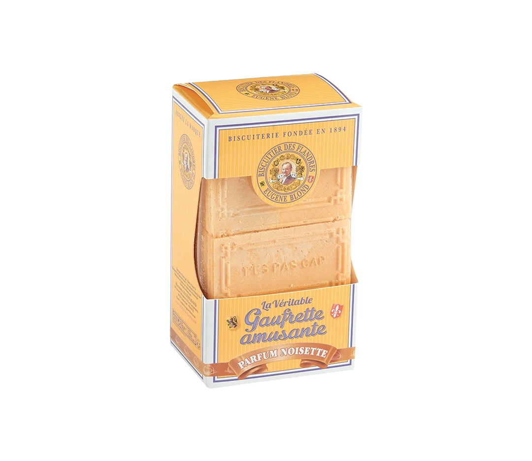 Spécialités de la région et plus particulièrement de la Biscuiterie Eugène Blond (qui en est d’ailleurs le dernier fabricant), les Gaufrettes Amusantes sont conçues à partir de la recette ancestrale et traditionnelle dans le Nord, près de Lille.