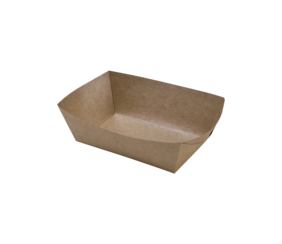 Petite barquette en carton kraft recyclé, couleur marron, pour une portion de frites ou divers dips.