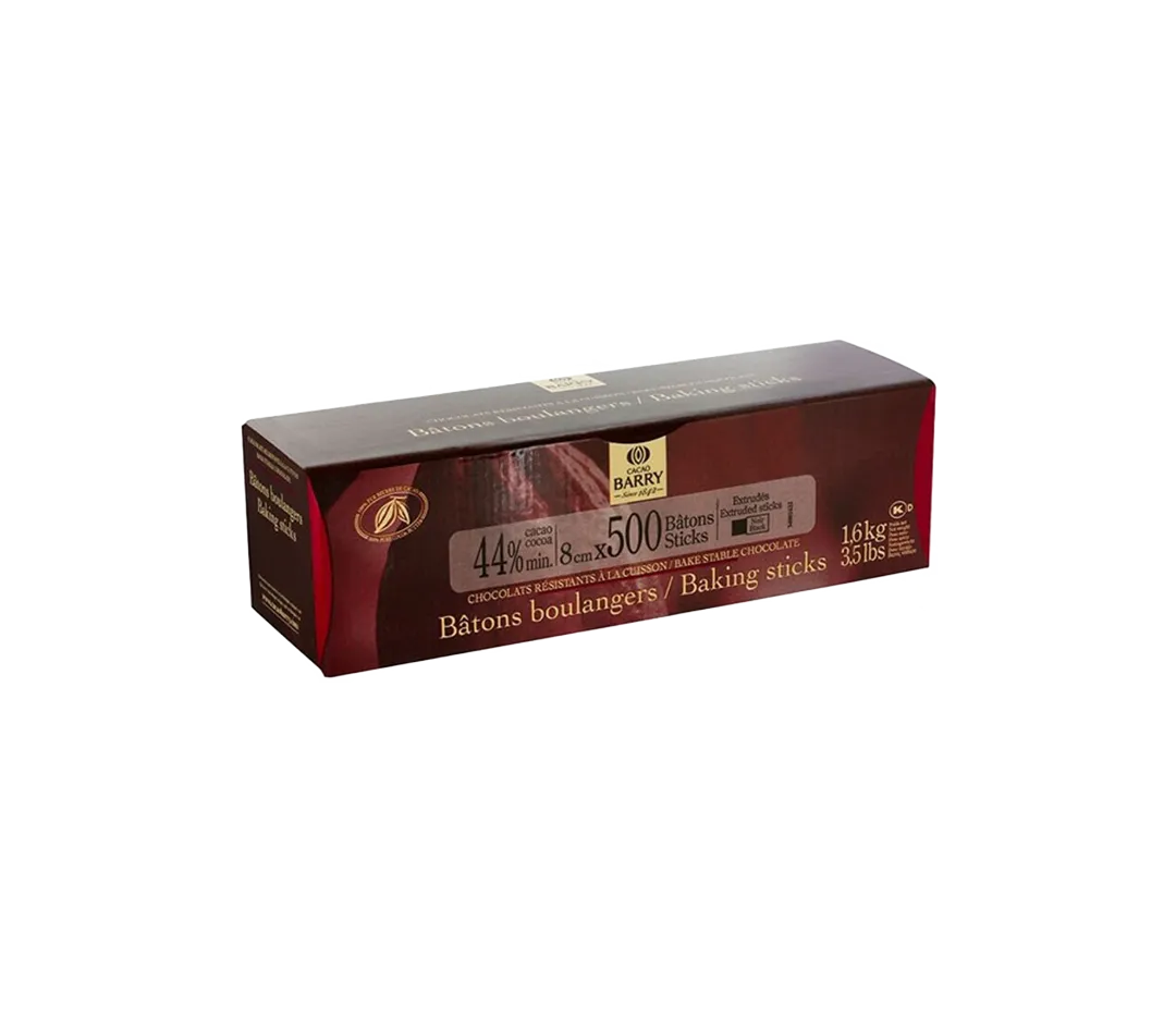 Bâtons boulanger chocolat noir prêts à l'emploi et résistants à la cuisson. Ils possèdent un format idéal pour réaliser des viennoiseries telles que les pains au chocolat.