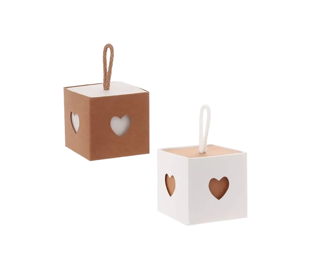 Boîte Kraft coeur avana et blanc