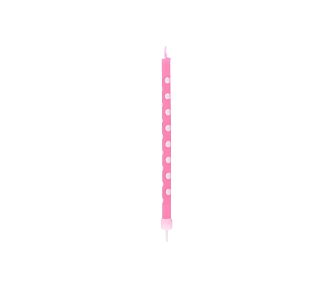 Bougie rose à pois blancs - x6 (Caissage de: 8)
