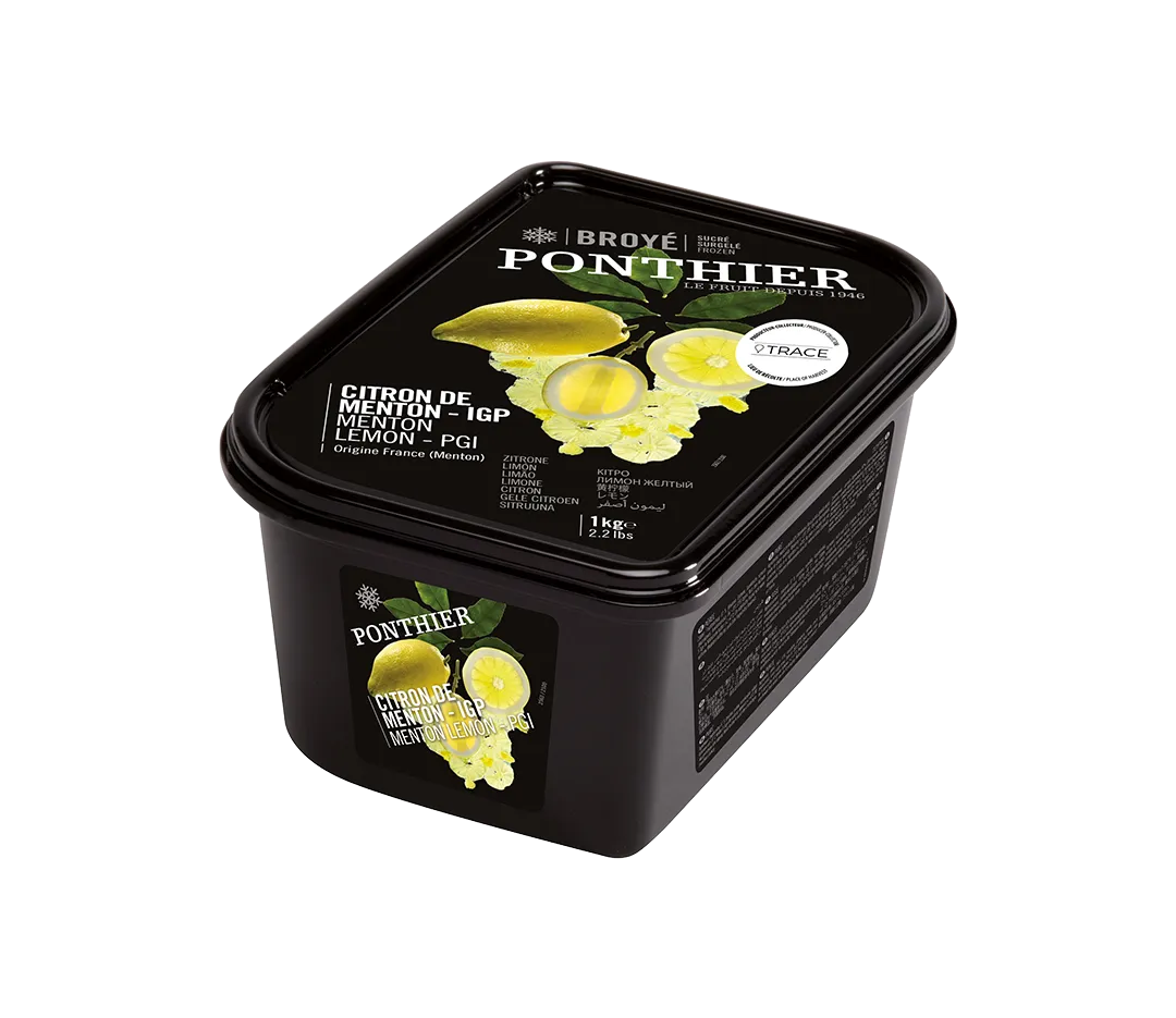 Ces méthodes de culture douce permettent de consommer la peau de l’agrume, très parfumée et finement granulée. Ce fruit très exclusif a inspiré à Ponthier une recette de broyé, réalisé à partir des citrons entiers. Dans les ateliers de Ponthier à Objat, ceux-ci sont parés et épépinés, confits à froid pour révéler toute la puissance de leurs arômes puis broyés. Le broyé permet d’apporter de l’intensité et de la matière aux créations pâtissières, il peut être utilisé en l’état ou être rebroyé plus finement si nécessaire.