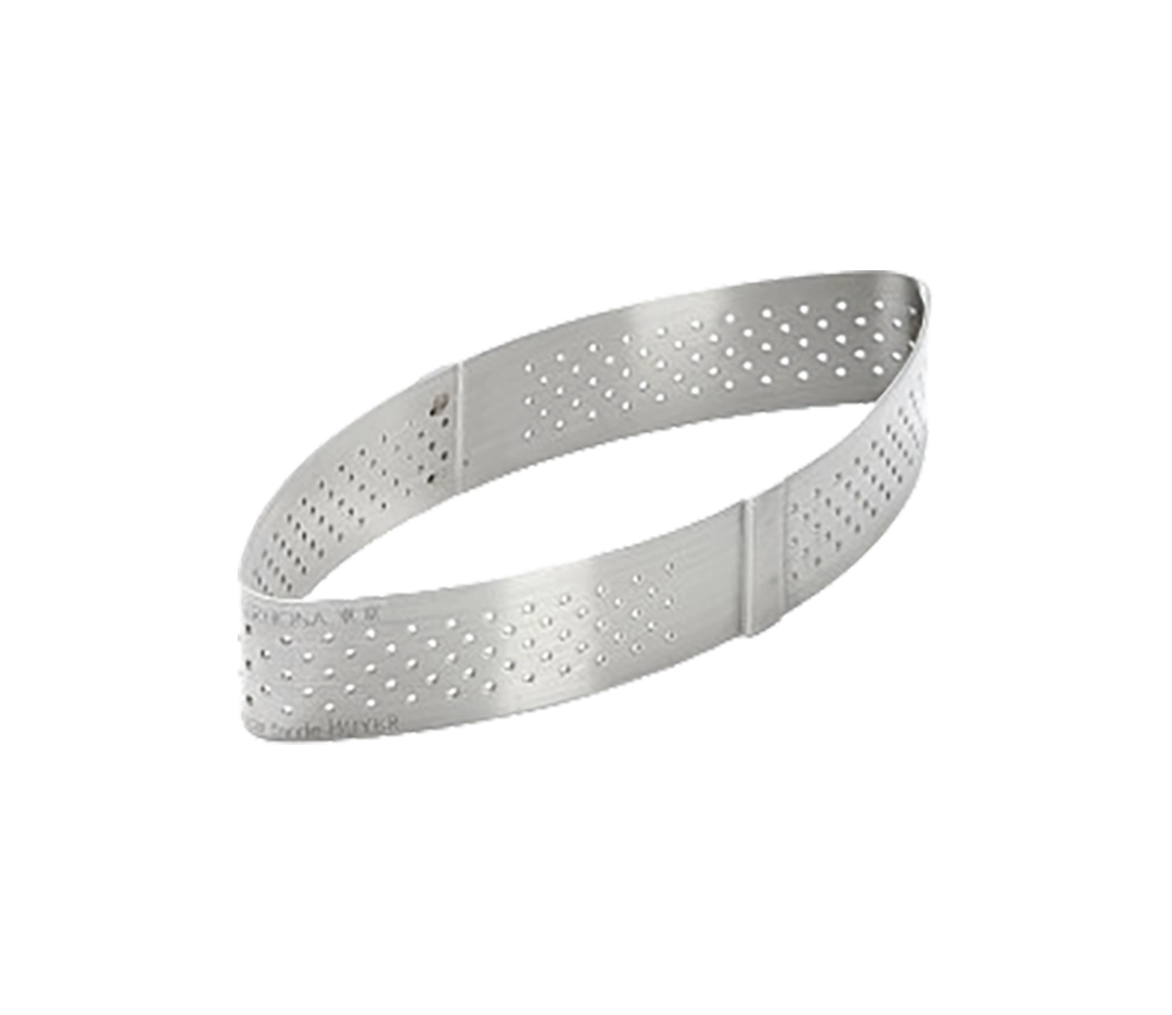 Cercle à tarte perforé en acier inoxydable développé en partenariat avec l’Ecole du Grand Chocolat Valrhona. Idéal pour les tartes, tartelettes ou entremets.