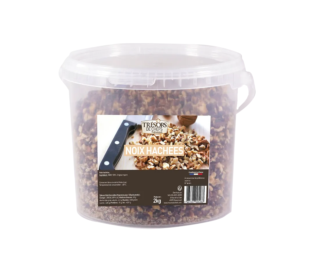 Les cerneaux hachés sont des éclats de noix soigneusement sélectionnés et calibrés pour une utilisation optimale en pâtisserie et en cuisine. Leur texture croquante et leur saveur intense apportent une touche gourmande et authentique à vos créations. Pratiques et polyvalents, ils s’intègrent parfaitement dans les recettes sucrées ou salées.