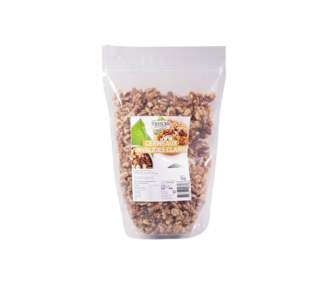 Nos cerneaux de noix clairs, soigneusement sélectionnés, offrent une saveur délicate et une texture croquante. Idéals pour sublimer vos créations sucrées et salées, ils se distinguent par leur qualité et leur fraîcheur. Parfaits pour les artisans exigeants et les recettes haut de gamme.