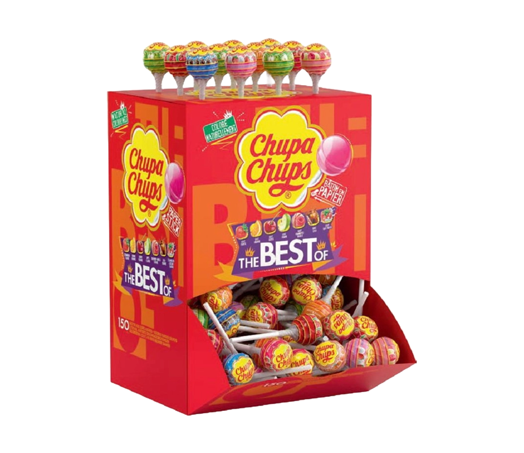 La boite Chupa Chups The best of, les plus célèbres goût des intemporelles Chupa Chups dans une seule et même boîte ! Goût fraise, orange, pomme, cerise, cola, lait fraise et lait framboise vanille.