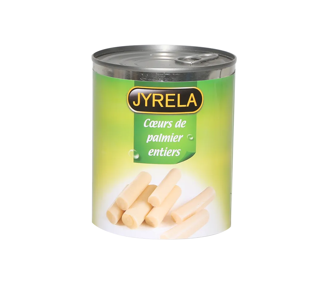 Cœurs de palmiers entiers, conditionnés au saumure.