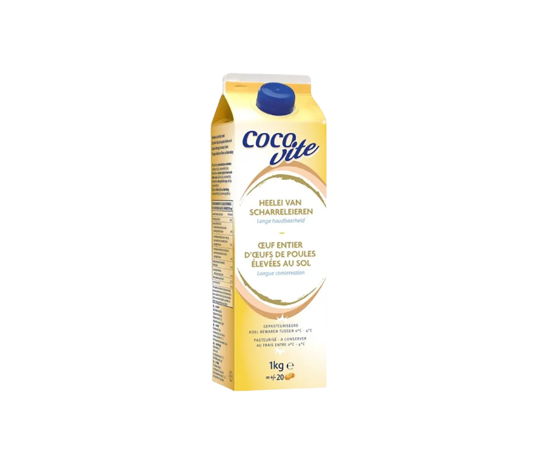 Produit d’œuf naturel composé à 100 % d’œuf entier sans additifs ni conservateurs. Les œufs en coquille proviennent de différentes exploitations de ponte et sont transportés, stockés, cassés, pasteurisés et emballés dans des conditions d’hygiène optimales. L’œuf entier est obtenu en cassant des œufs de poule frais, en lui faisant subir un processus de pasteurisation, en l’emballant de manière adéquate et en le conservant au frais (entre 0 °C et 4 °C). Le processus de pasteurisation garantit, en plus de la sécurité des aliments (pas de salmonelles), une plus longue conservation du produit. Ce produit est idéal pour toutes les préparations nécessitant un œuf naturel, frais et savoureux.
