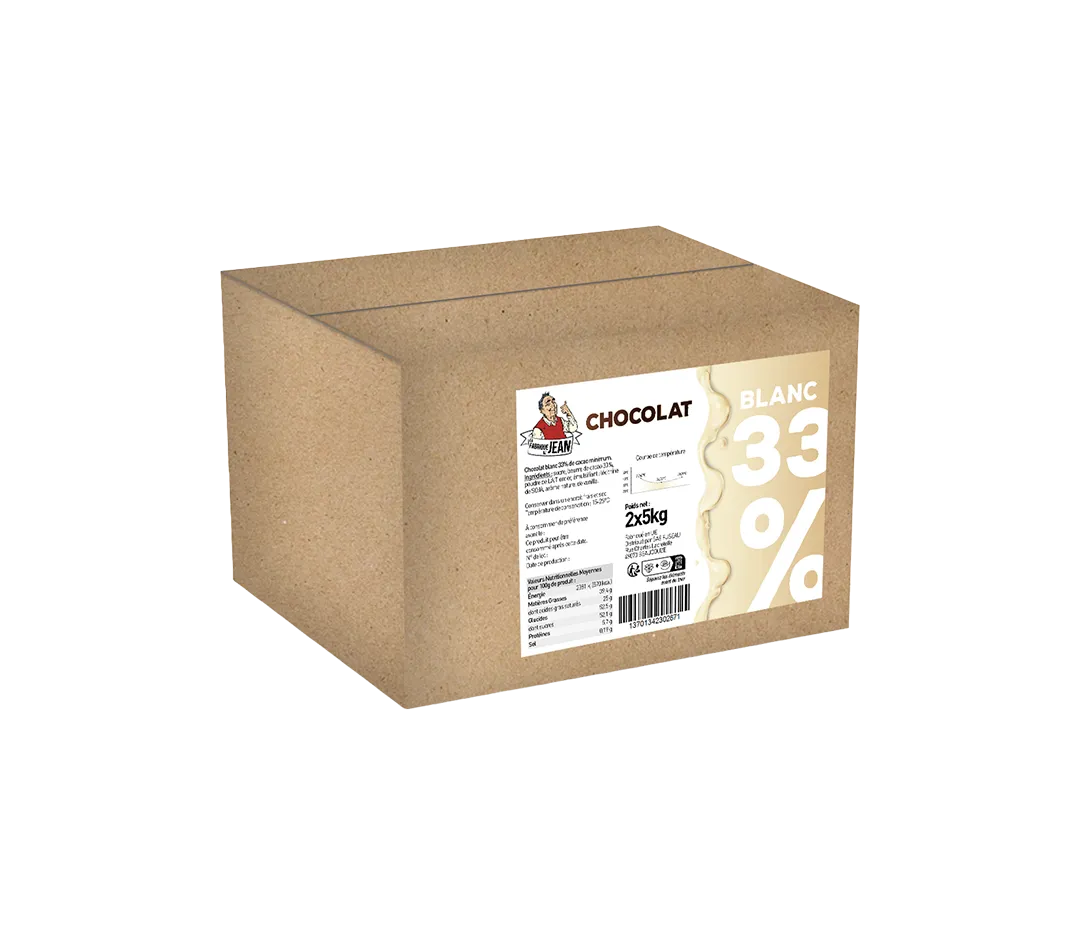 Convient à toutes les applications en pâtisserie, chocolaterie et desserts.Contient 33 % de cacao.Couverture blanche avec une fluidité moyenne.
