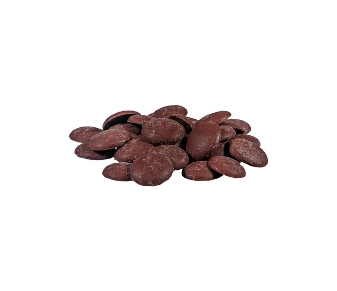 Ce chocolat de couverture noir amer aux notes grillées a un goût puissant de cacao délicatement relevé par une pointe de café et de châtaigne.