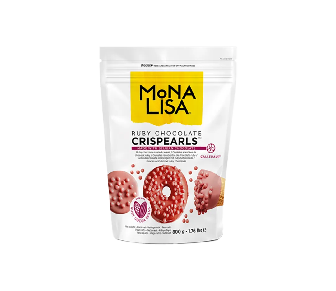Les Crispearls™ sont de petites perles brillantes, un coeur croustillant enrobé d'un délicieux chocolat Ruby Callebaut. Idéal pour apporter la touche finale à vos desserts et pâtisseries. Peuvent être parsemées sur des entremets, desserts, glaçage, pour ajouter une touche élégante d'une pure indulgence. Incorporées aux mousses au chocolat, glaces ou bavarois, elles apportentn une texture croustillante à vos desserts.