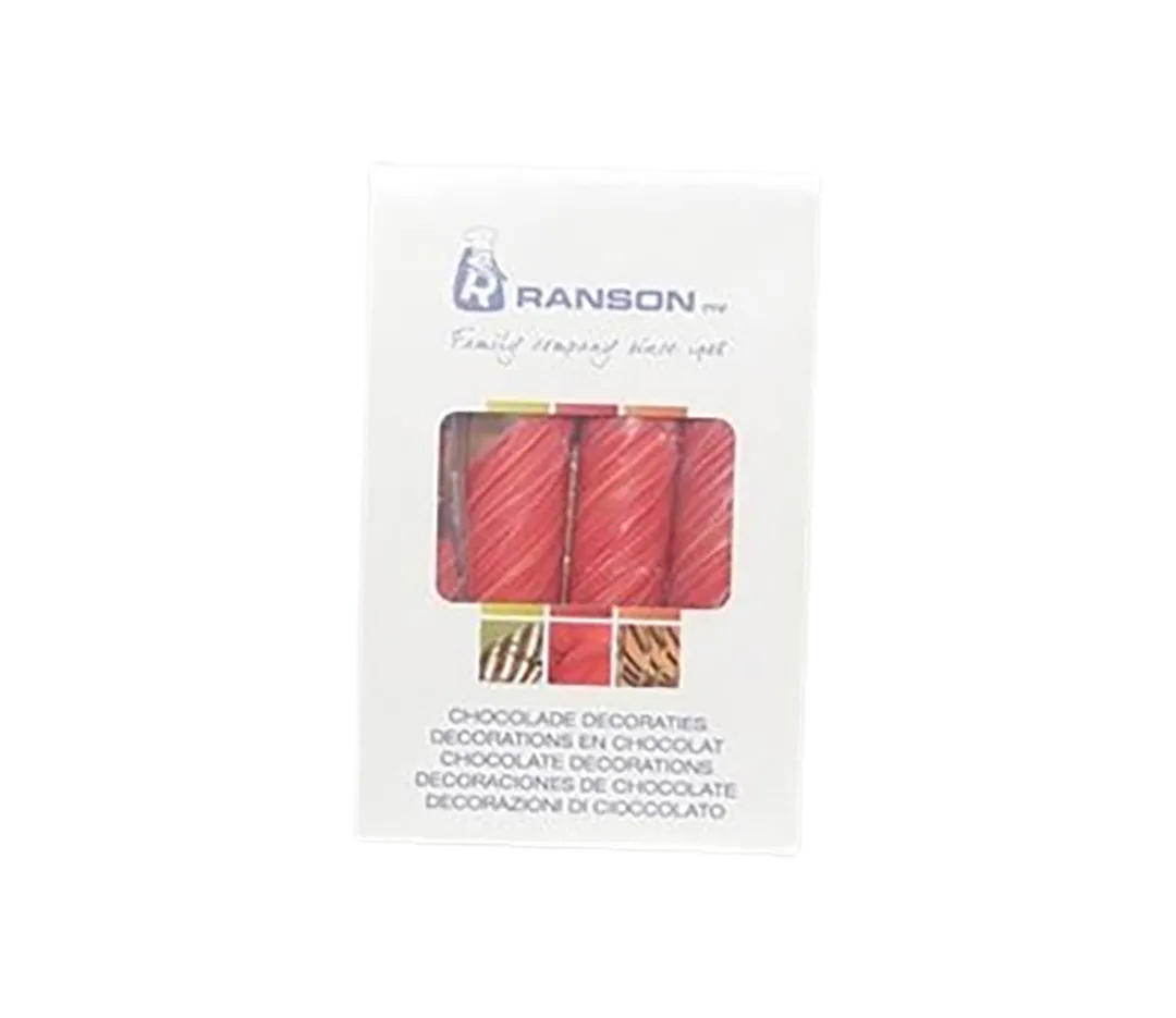 Décor à base de chocolat blanc. Dimensions: 30 x 120 mm.