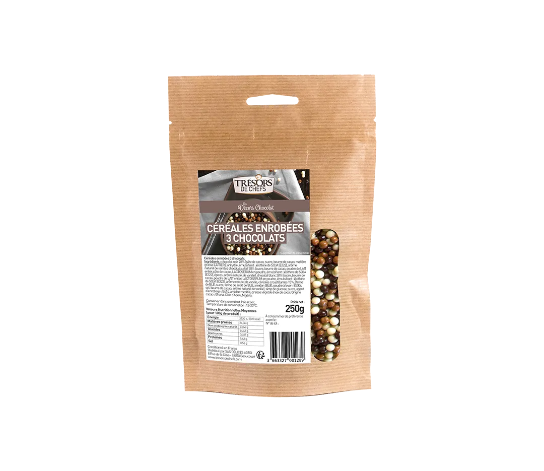 Billes de céréales croustillantes au chocolat blanc, au lait et noir - 250g