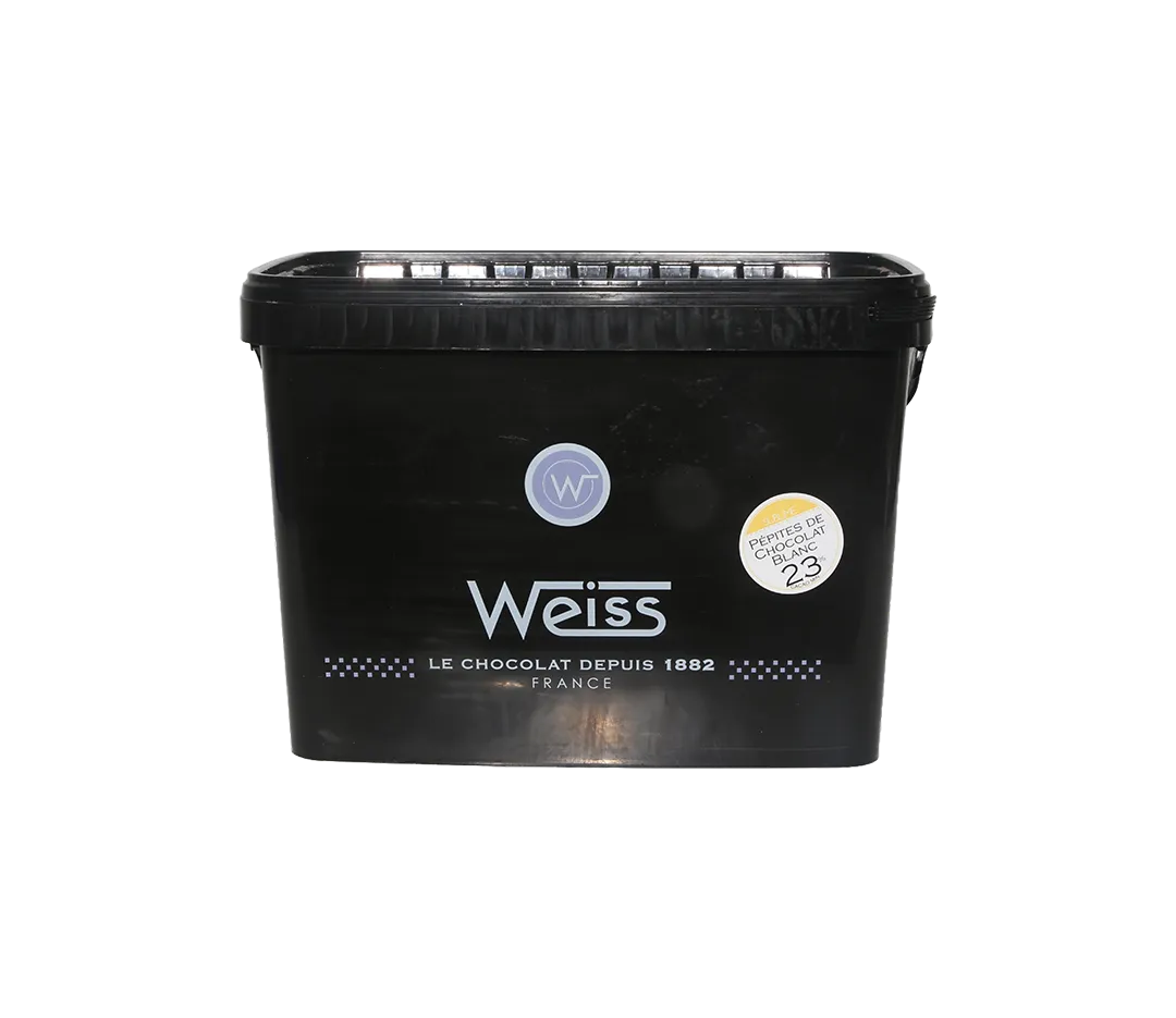 Une recette de couverture spécialement développée pour Les Sublimes chocolat blanc 23% de cacao minimum. Une intensité de chocolat supérieure aux standards du marché permettant de remplacer une partie des pépites par d’autres ingrédients. Une bonne longueur en bouche sans amertume.