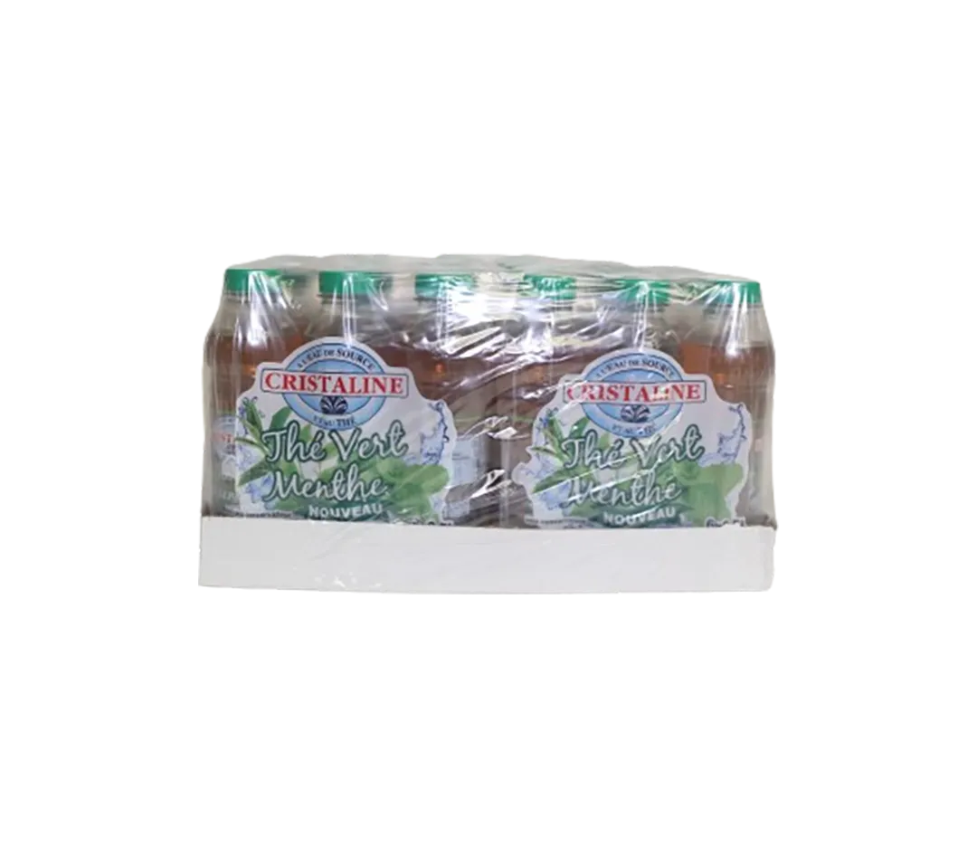 Découvrez Cristaline aux extraits de thé vert, thé noir et menthe, véritable infusion aux arômes naturels et sans conservateur.