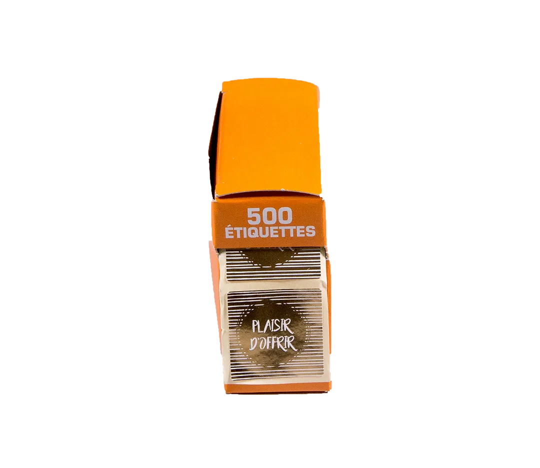 Étiquettes adhésives dorée et blanche idéales pour finaliser vos cadeaux.