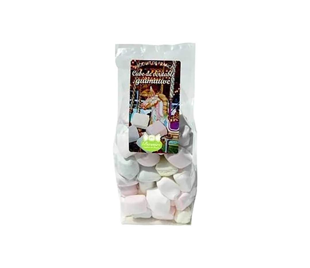 Guimauve de tradition en petits cubes aux arômes naturels, aux goûts d'enfance : Anis, Violette, Citron, Mandarine, Fleur d'oranger.