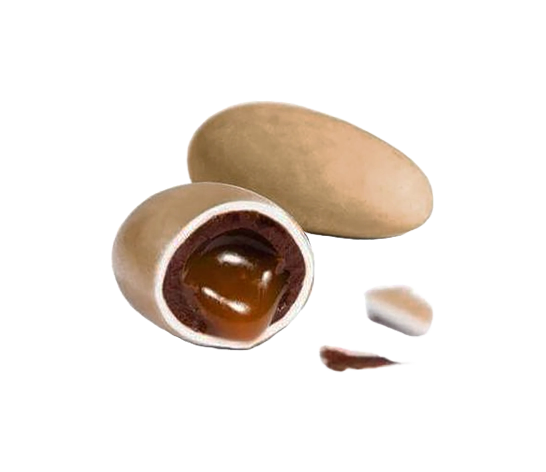 Un cœur fondant riche en gourmandise, une fine pellicule de sucre, une coque de chocolat noir fourrée au caramel beurre salé.