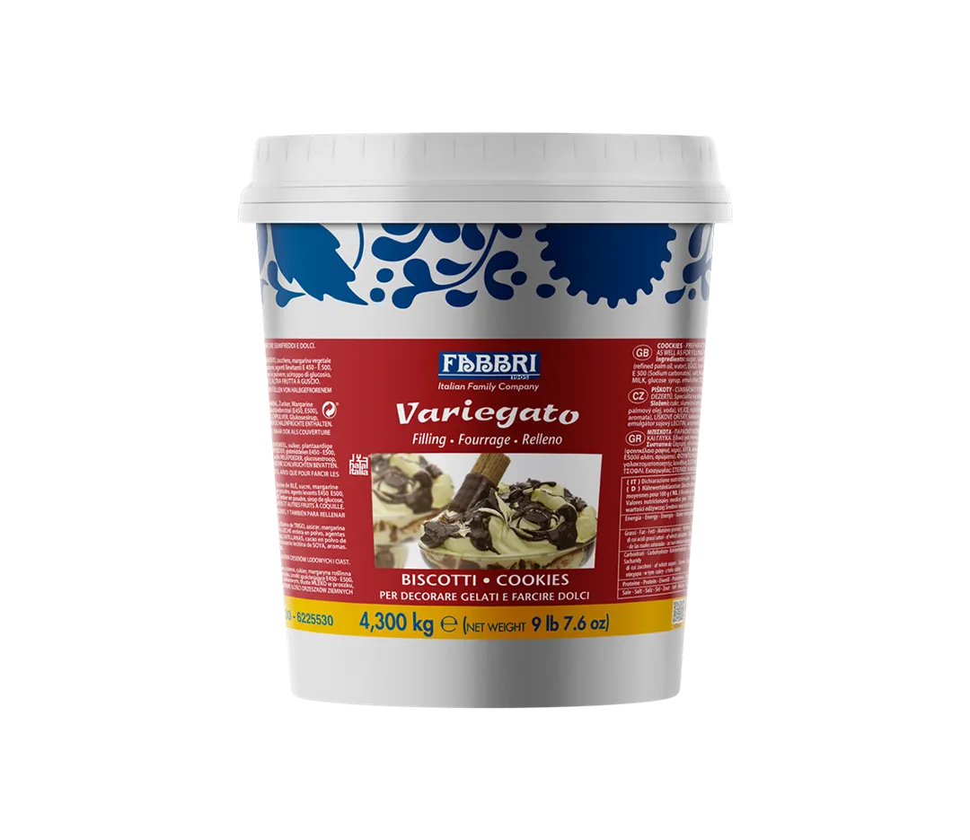 Préparation adaptée à la décoration des glaces et yaourts, ainsi qu’à la garniture des semifreddos et des desserts, Fabbri vous propose une large gamme de douceurs et desserts. La ligne Variegato (Marbrage) est un ingrédient indispensable pour les recettes les plus créatives, elle est excellente pour le remplissage et la décoration de gâteaux, semifreddo et mousses.