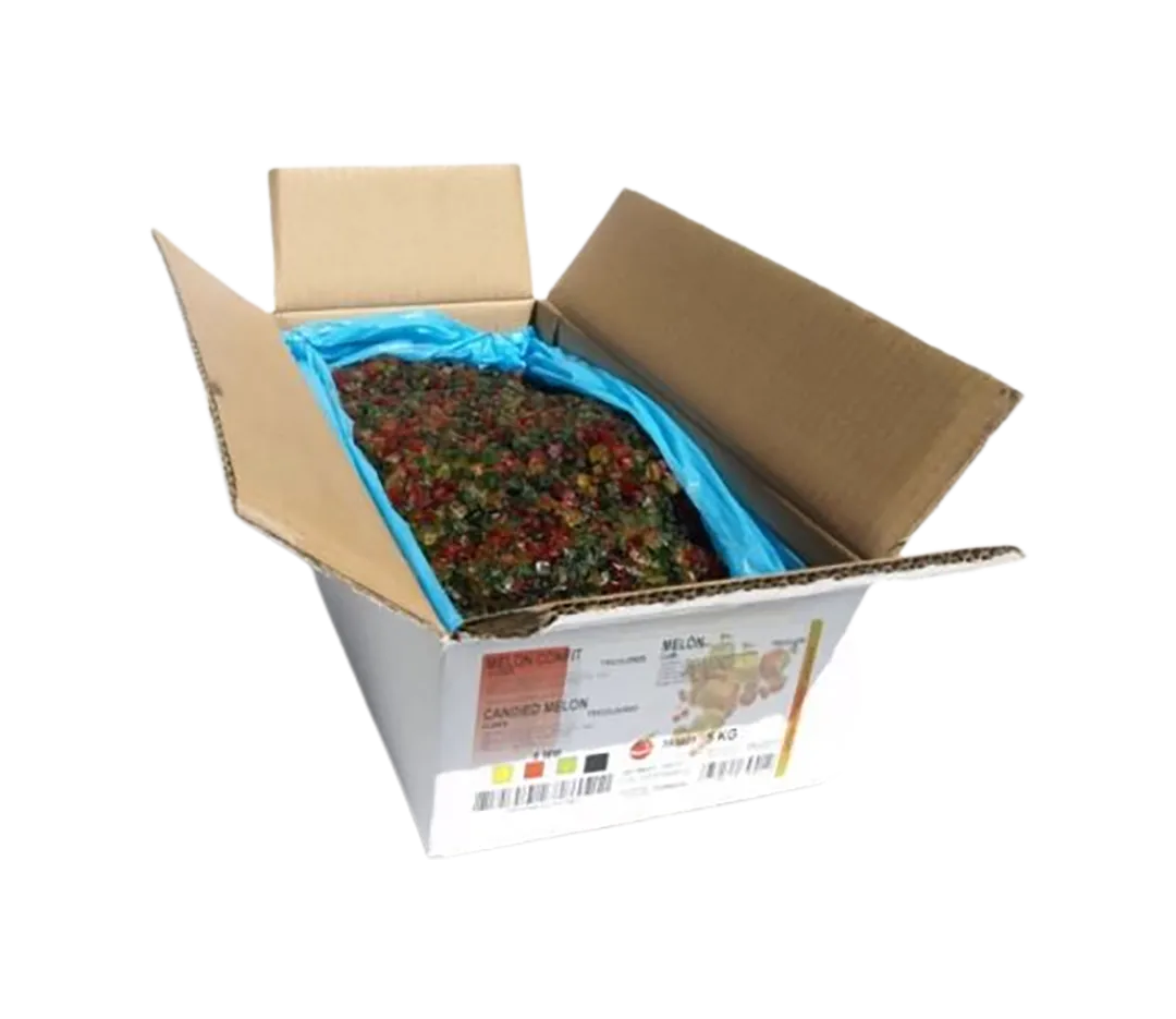 Cet assortiment en trois couleurs de cubes de melon confits vous permettra de concocter de délicieux desserts provençaux.
