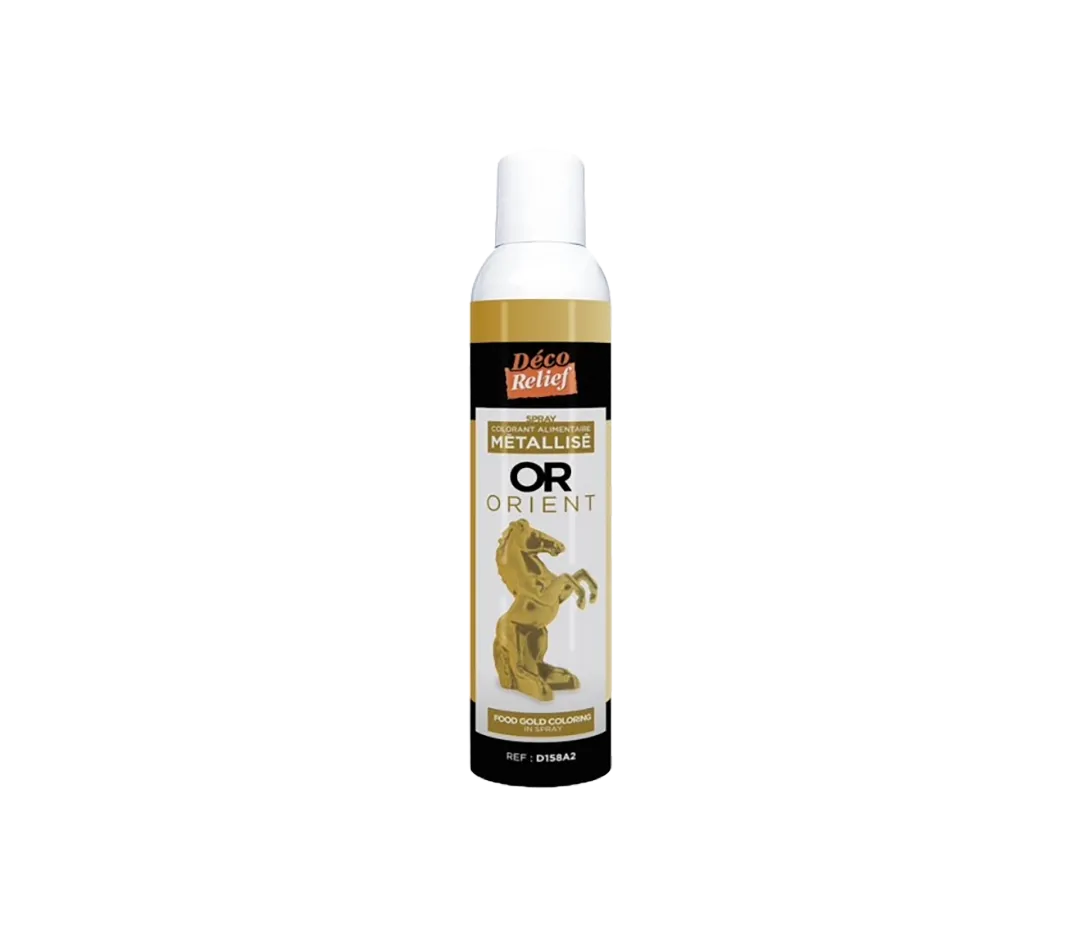 Le Spray Alimentaire Or Orient Métallisé donnera un magnifique effet métallique doré à toutes vos créations, pâtisseries ou chocolats. Vos réalisations deviendront de véritables œuvres d'art !