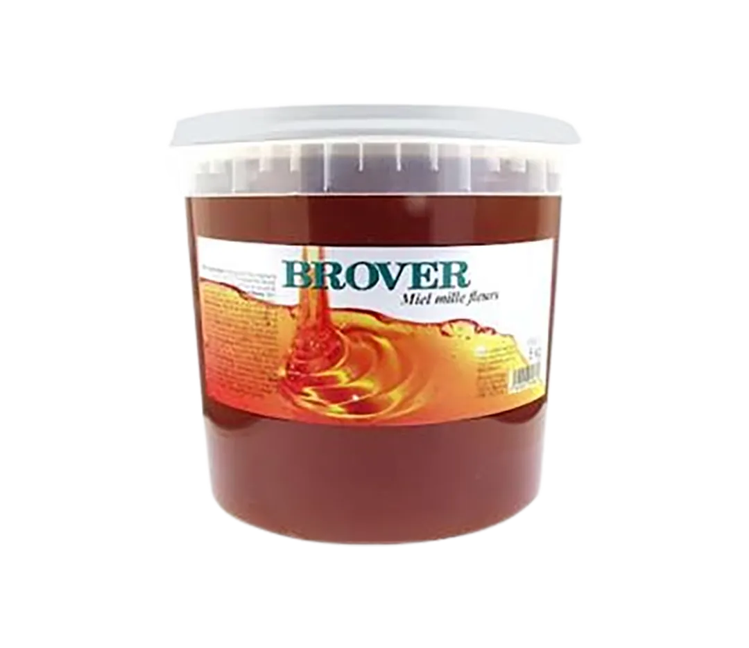 Un miel de fleurs de couleur ambre clair, doux et très fluide. Garanti sans miel origine Chine, filtré et pasteurisé pour un usage professionnel