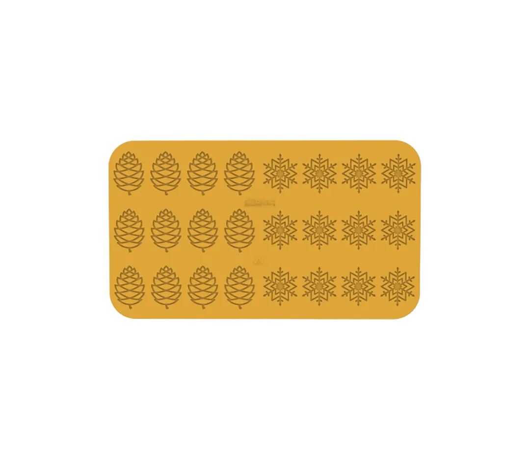 Le moule silicone 24 pommes de pin et flocons Silikomart propose 2 motifs différents pour la réalisation de décors sur le thème de l'hiver.