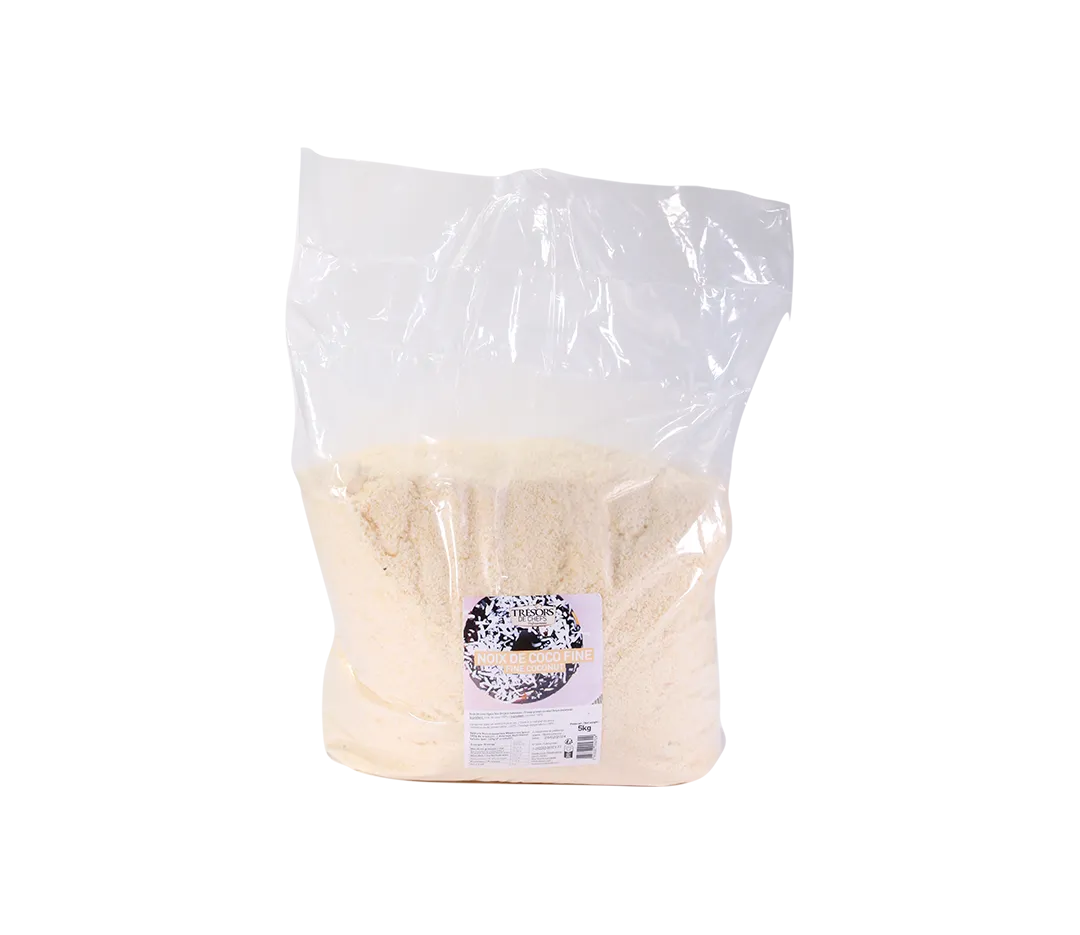 La noix de coco râpée est un ingrédient naturel et polyvalent, issu de la chair fraîchement séchée de la noix de coco. Idéale pour apporter une touche exotique, elle s'intègre parfaitement dans les pâtisseries, desserts et préparations salées. Disponible en différentes granulométries, elle répond aux besoins des professionnels exigeants.