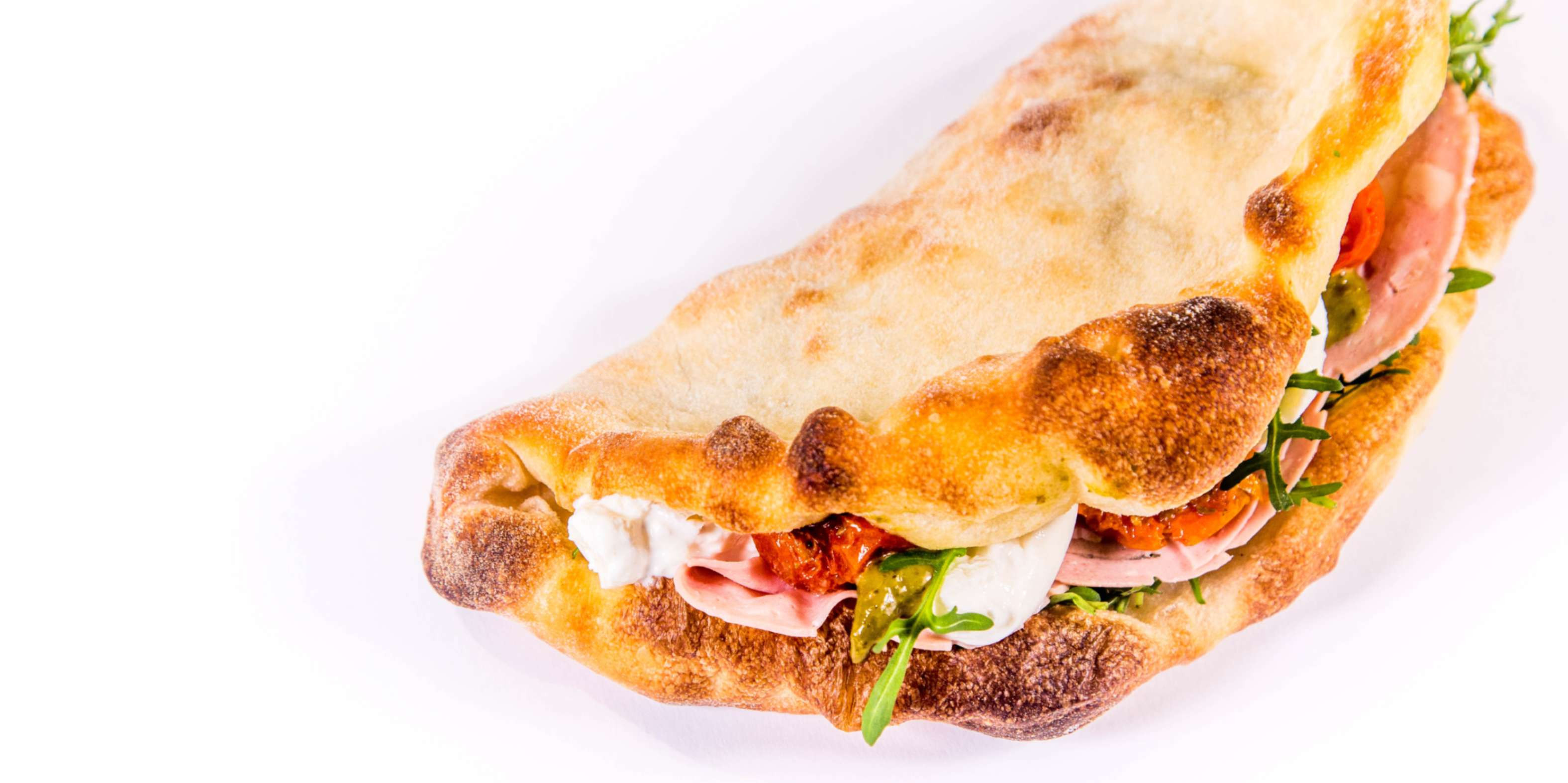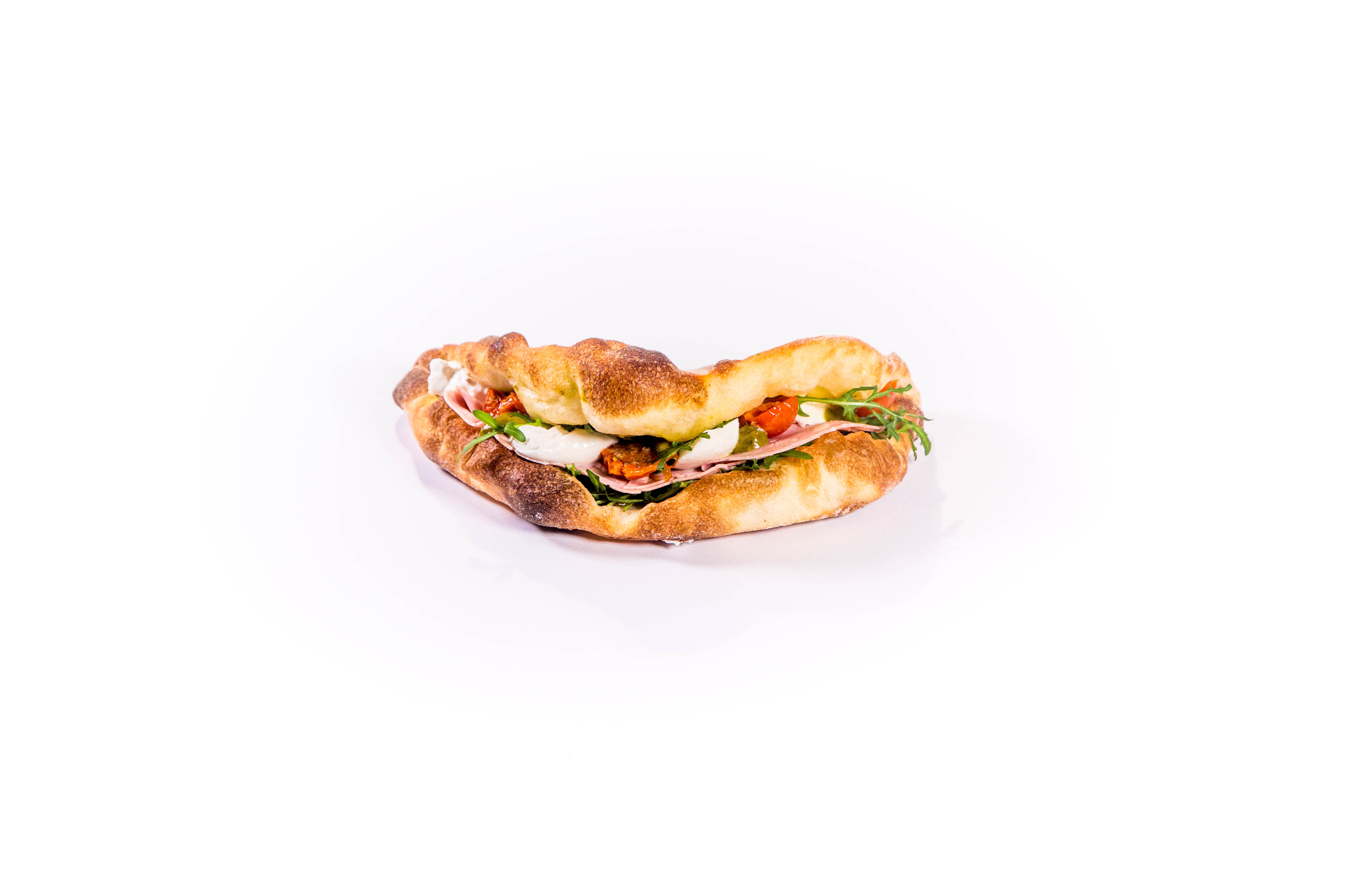 Un authentique panuozzo italien alliant la gourmandise de la mortadelle et de la burrata à la fraîcheur des tomates confites et d'un pesto basilic-pistache !