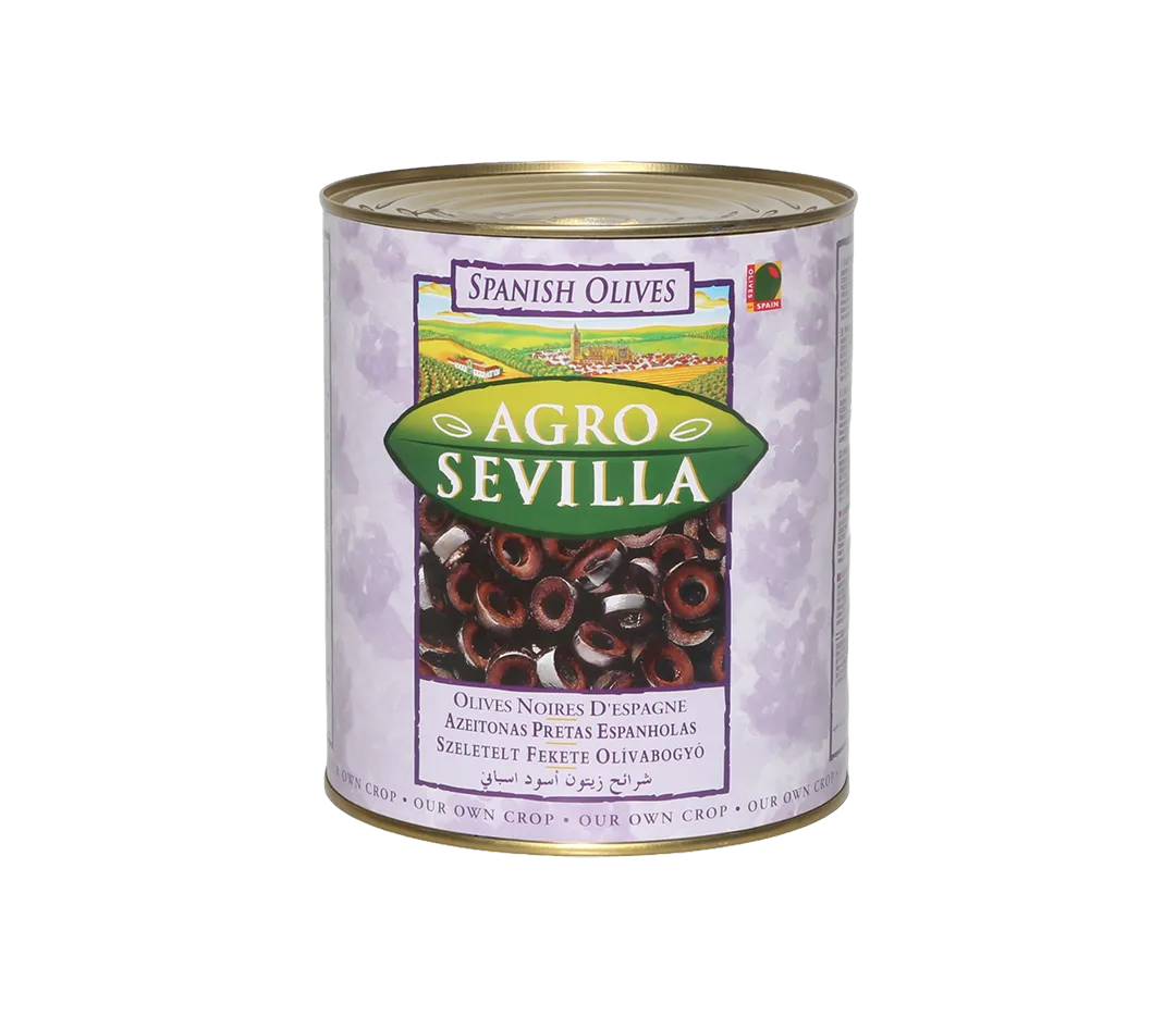 Olives d'Espagne noircies par oxydation en saumure rondelles.
