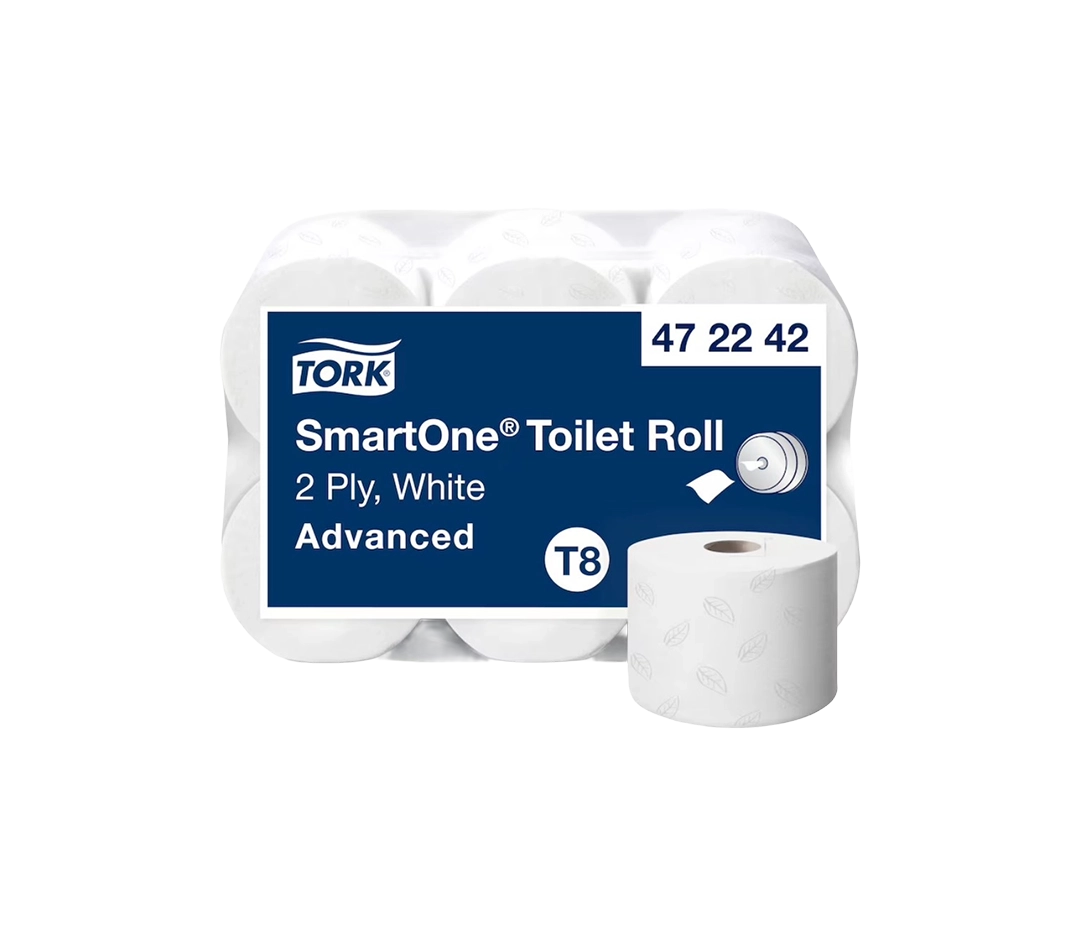 Le système de distribution Tork SmartOne distribue une feuille de papier hygiénique à la fois, permettant de réduire la consommation jusqu’à 40 % par rapport aux distributeurs pour rouleaux Jumbo traditionnels et couvrant ainsi plus de visites par rouleau. Les rouleaux Tork SmartOne de très grande capacité sont adaptés aux sanitaires exigeants et très fréquentés.