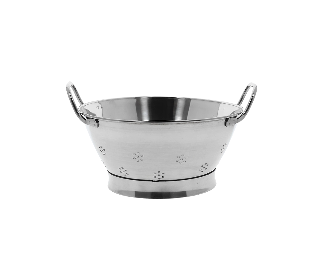 Pied inox : passoire surélevée donc pas de contact entre les aliments et l’eau d’égouttement ; meilleure stabilité.