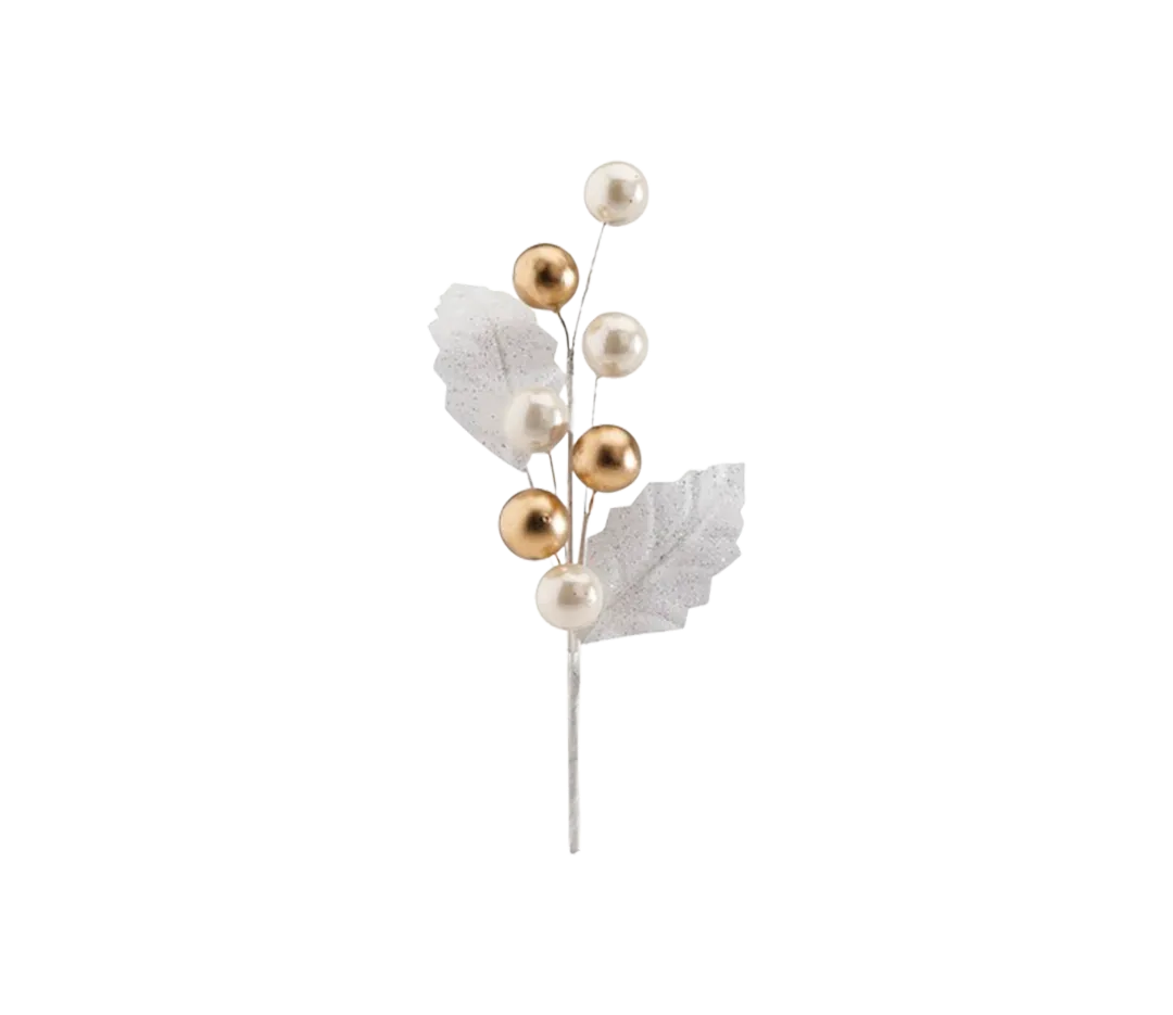 PIQUET FEUILLES BOULES OR/NACRES