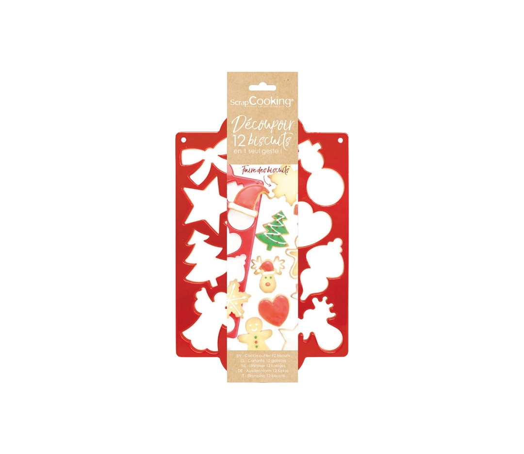 Cette plaque emporte-pièces Noël permet de réaliser 12 biscuits différents en un seul geste ! Recette incluse.