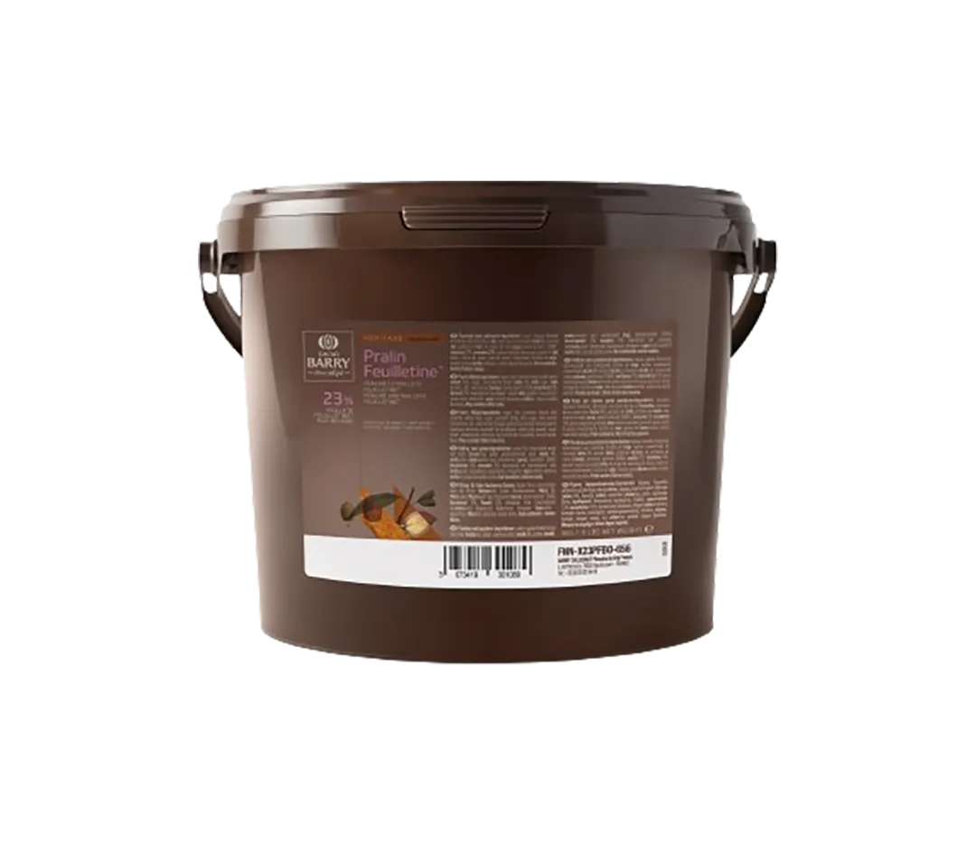 Une préparation gourmande et croustillante prête à l’emploi composée de brisures de crêpes dentelles, de praliné amandes-noisettes et d’un chocolat de couverture au lait.