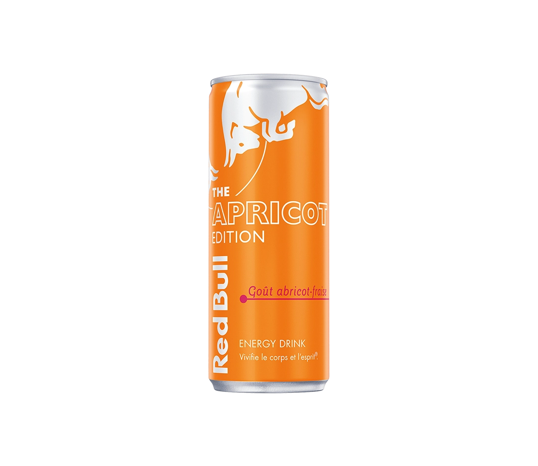 La formule unique de Red Bull Apricot Edition contient des ingrédients de haute qualité : caféine (0,03%), taurine (0,4%), vitamines du groupe B, sucres, eau.Packs de 24.