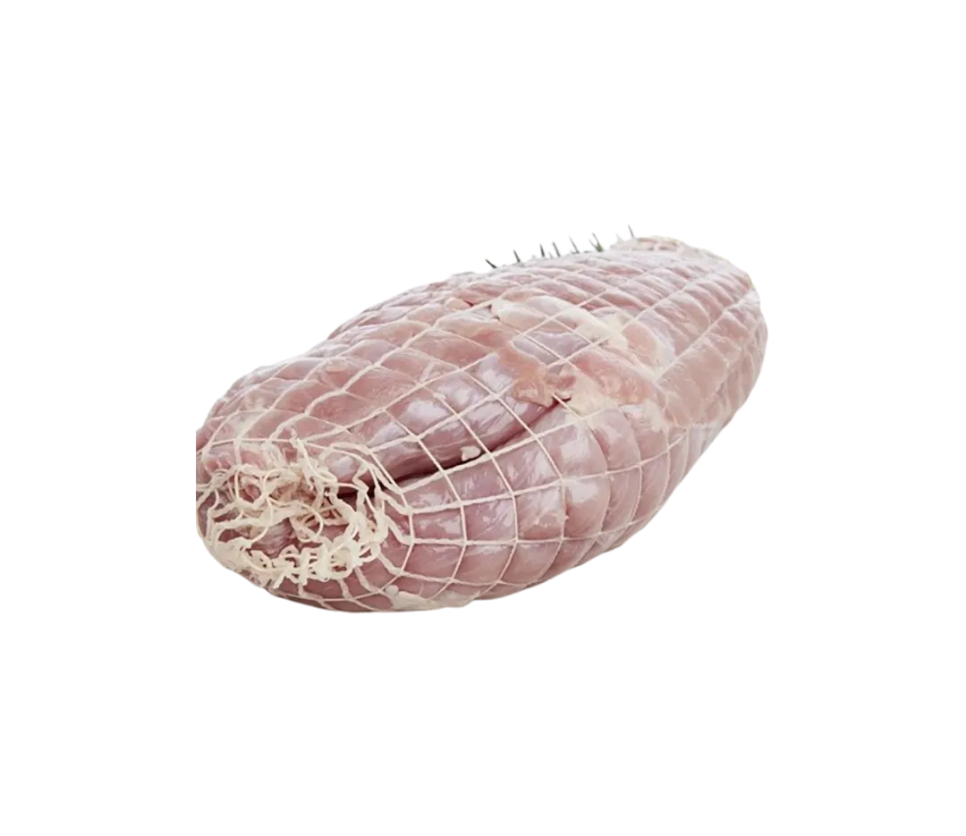 Rôti de dinde sous filet composé de 50% de viande rouge avec peau et de 50% viande blanche de dinde avec peau, cru et origine France. Conditionné sous vide.