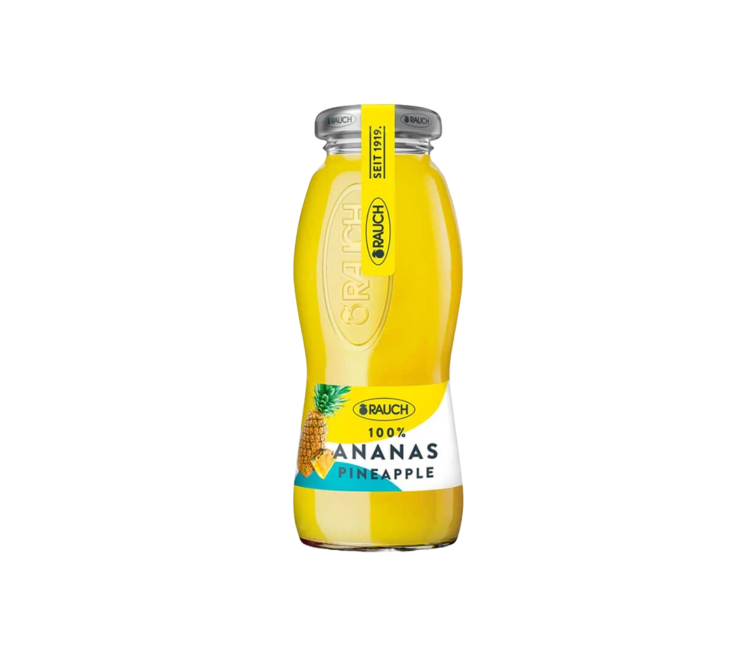 Provenant des terres vastes et ensoleillées des régions tropicales, le Jus d'Ananas 100% de Rauch offre une expérience de goût pleinement naturelle et revigorante. Ce jus, obtenu par pressage d'ananas mûrs et soigneusement sélectionnés, se distingue par sa saveur intense et authentique qui reflète la qualité du fruit frais.