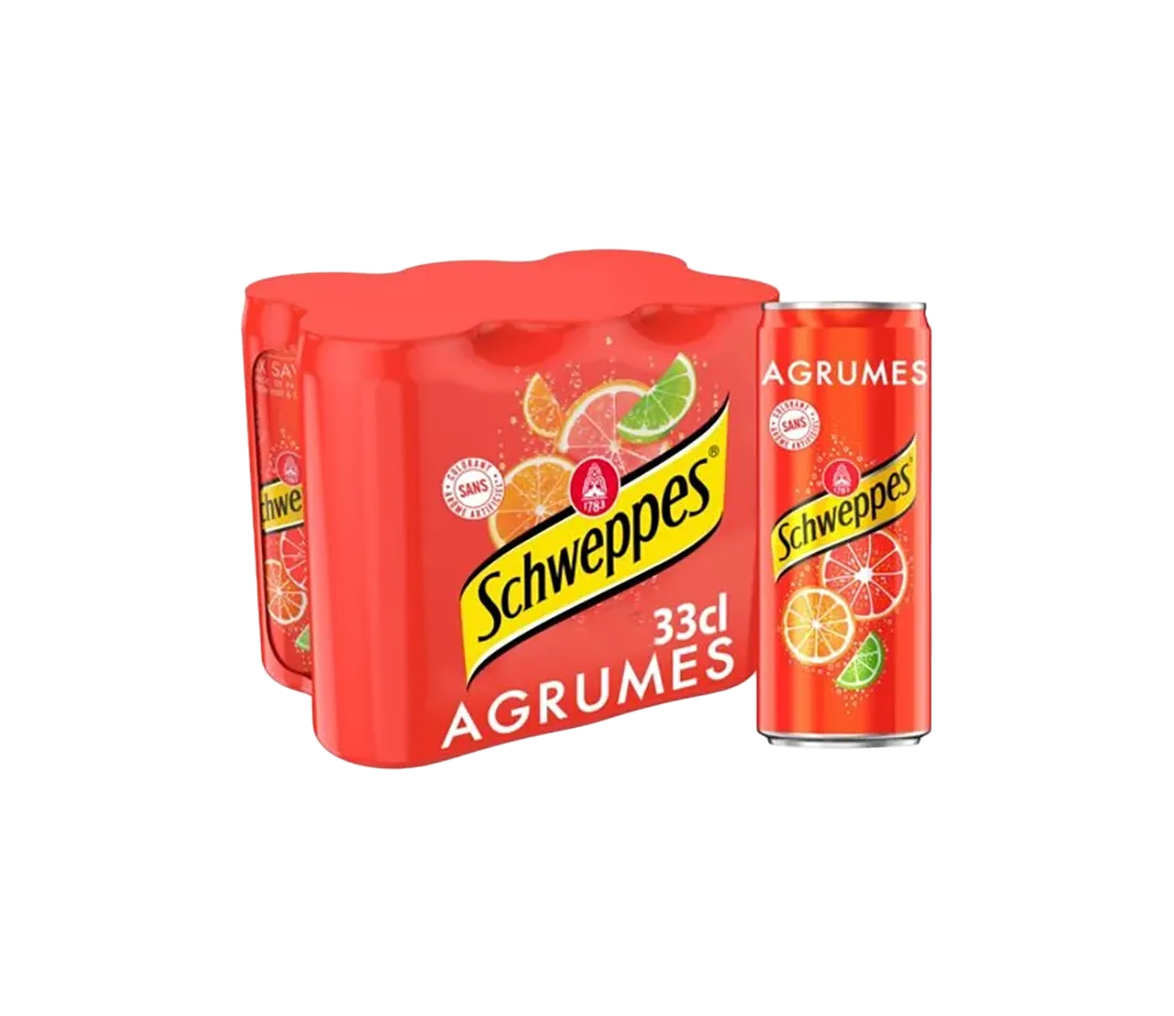 Boisson gazeuse rafraîchissante aux arômes naturels d'agrumes (orange, pamplemousse, citron vert et mandarine) avec autres arômes naturels, avec sucre et édulcorants. Aux saveurs de 4 agrumes.