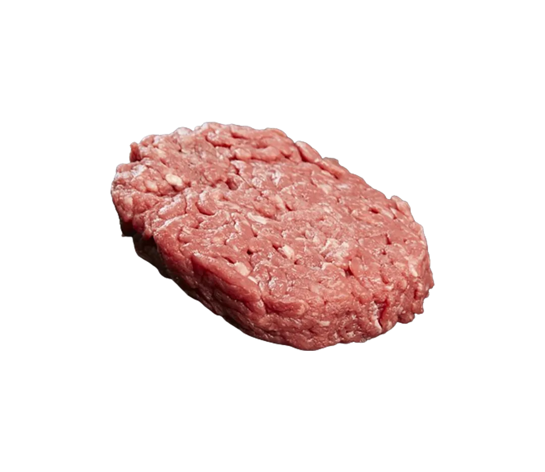 Steak haché de bœuf 15% MG, façon bouchère, de forme ronde, cru et origine UE.
