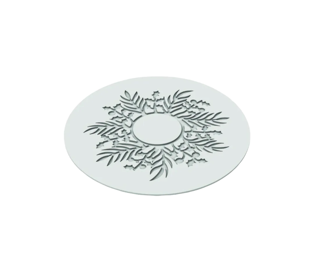 Ce tapis rond en silicone alimentaire vous permettra de réaliser un décor festif à la surface de vos entremets de Noël.