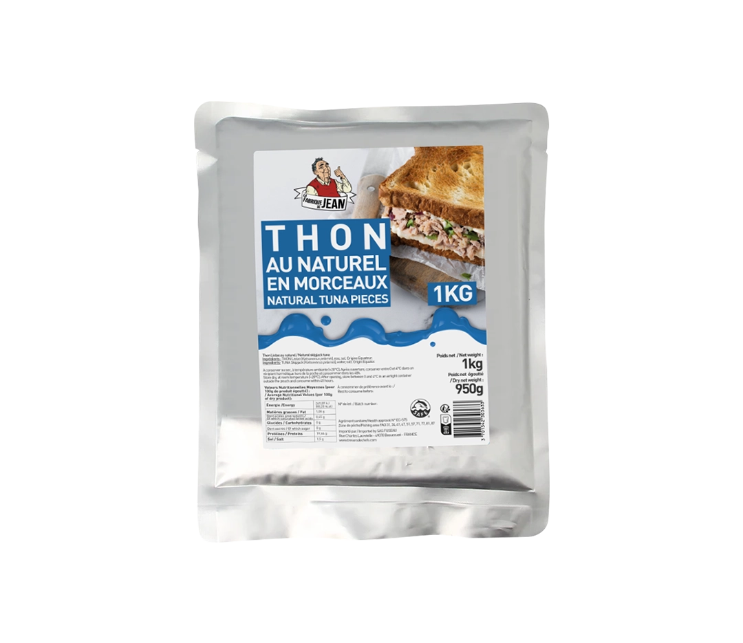 Découvrez notre thon naturel en morceaux, délicatement préparé et simplement conservé dans son jus. Idéal pour des salades, sandwichs ou plats chauds, il allie fraîcheur, saveur authentique et richesse en protéines. Sans additif ni conservateur, pour une alimentation saine et équilibrée.